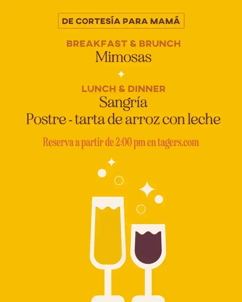 Aceptamos reservas para comida y cena a partir de las 2:00 pm (reserva en tagers.com/reservar)