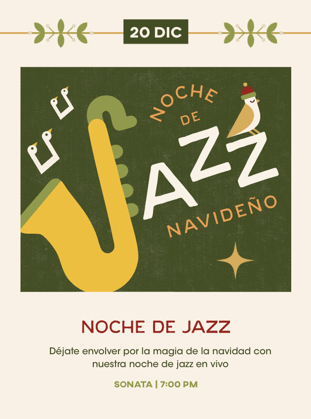 Este sábado 20 de diciembre, déjate envolver por la magia de la Navidad con nuestra noche de jazz en vivo, a cargo de nuestro artista invitado. 🎷 Luces cálidas, jazz […]