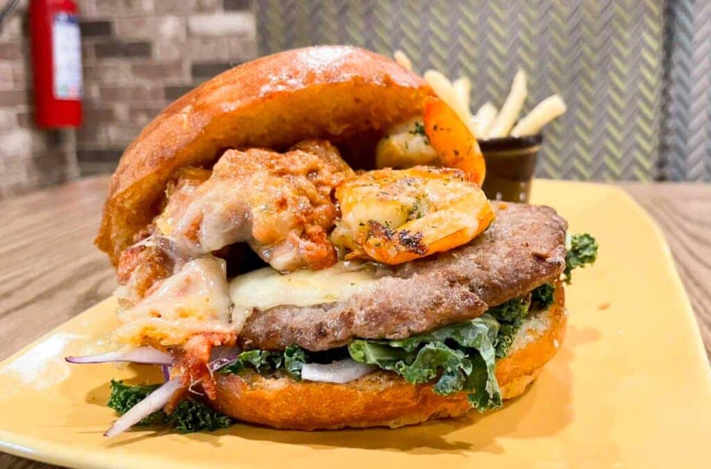 Entendemos perfectamente por qué esta es una de sus favoritas, porque además de que la carne es súper jugosa a la parrilla y el pan es elaborado todos los días en nuestro horno, tiene choriqueso y camarones al grill, y acompañada de nuestras papas crispy o unas buenas fries de camote definitivamente te reinicia el día. Perdón por el granito de antojo