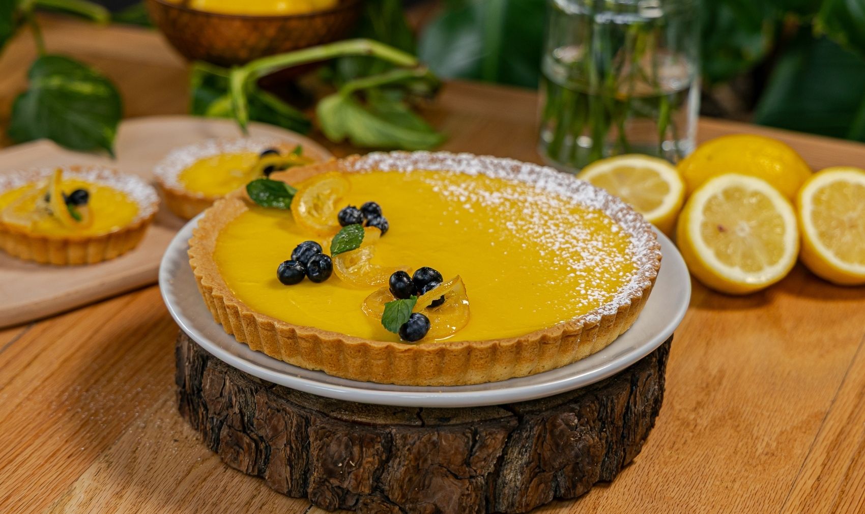 Una tarta inspirada en el clásico italiano, con base crocante y relleno cremoso de limón amarillo, vainilla y ralladura fresca.